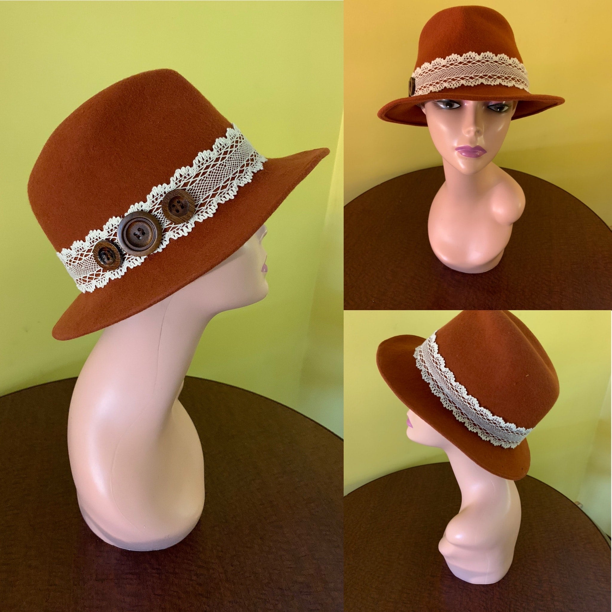 Ladies cinnamon felt fedora, size medium (23 inches)