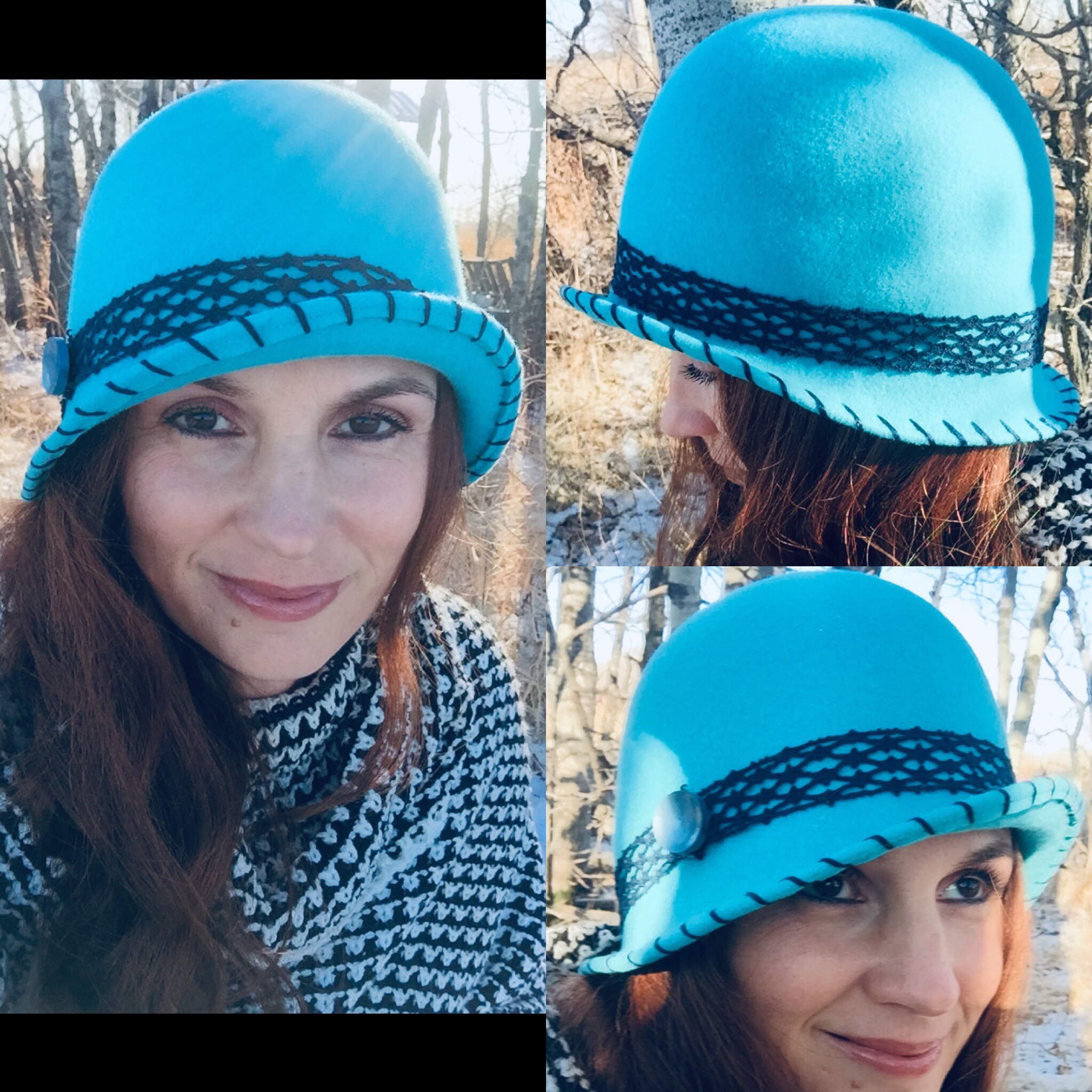 Ladies turquoise wool felt cloche, size small (22 inches)